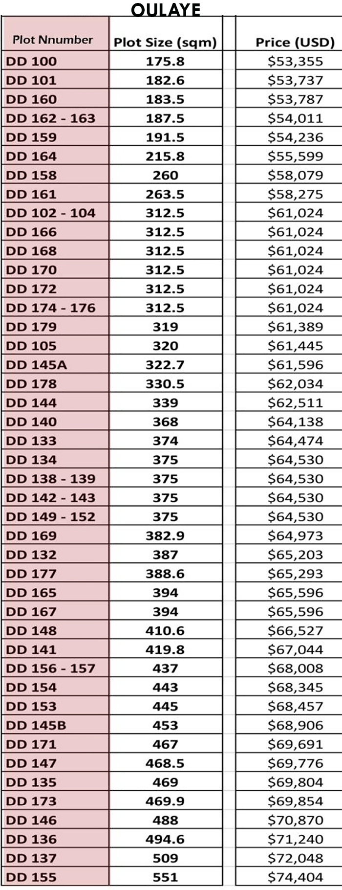 OULAYE 3 BEDROOM BUNGALOW Features BEDROOM: 3 BATHROOM: 2 LIVING ROOM: 1 KITCHEN: 1 PARTLY FITTED DINNING AREA Price List